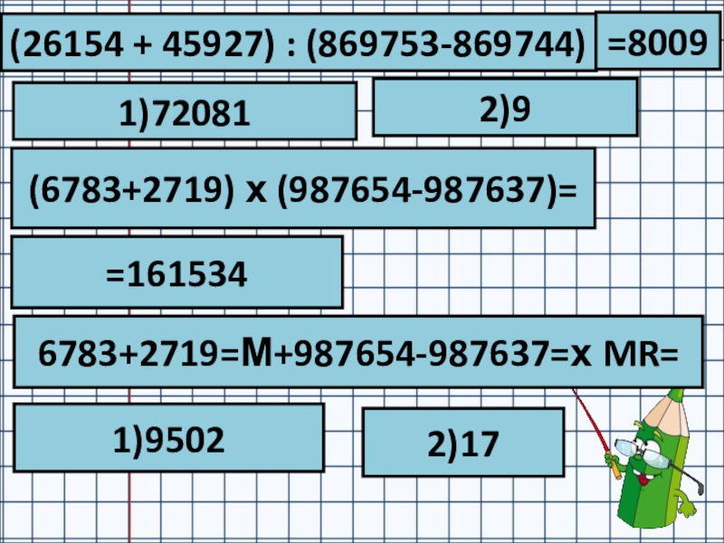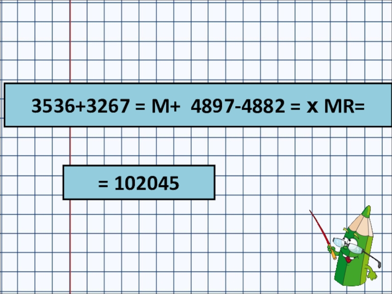 - прибавление числа из экрана цифр к числу, хранящемуся в памяти числа из экрана