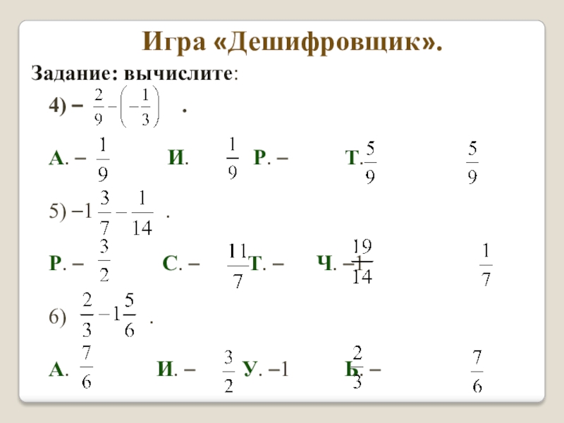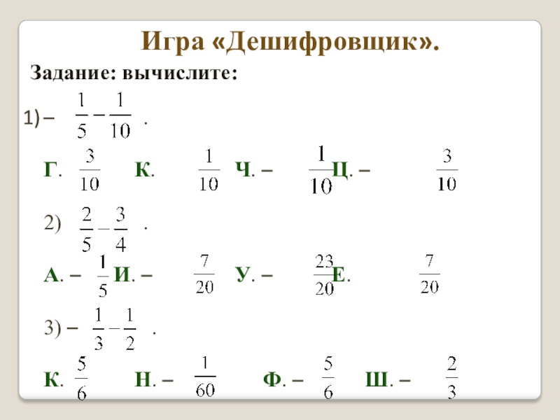 Игра «Дешифровщик».Задание: вычислите:–         .Г.	     К.