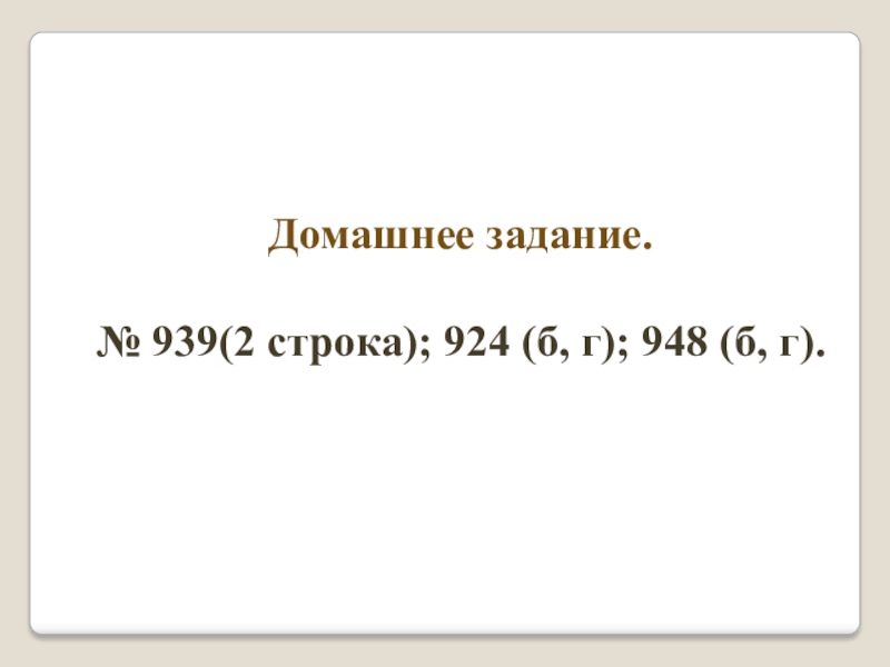 Домашнее задание. № 939(2 строка); 924 (б, г); 948 (б, г).