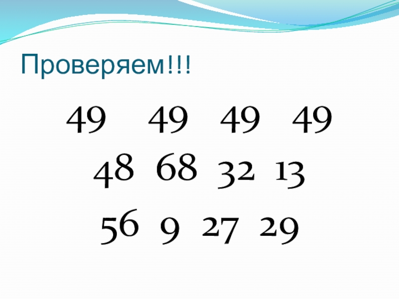 Проверяем!!!49  49  49  4948 68 32 13 56 9 27 29
