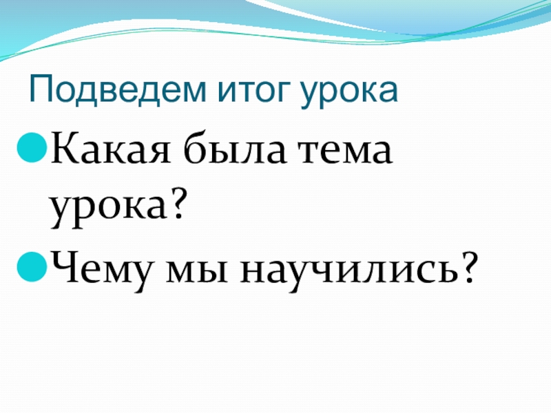 Подведем итог урокаКакая была тема урока?Чему мы научились?