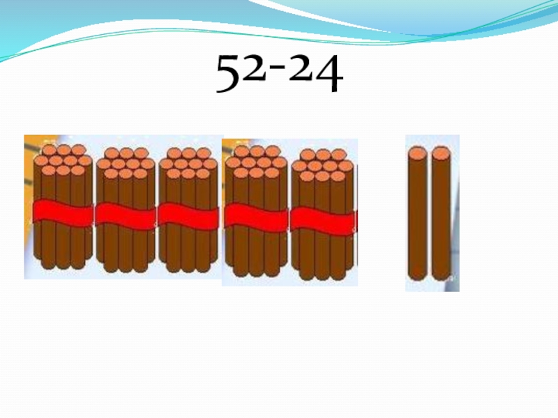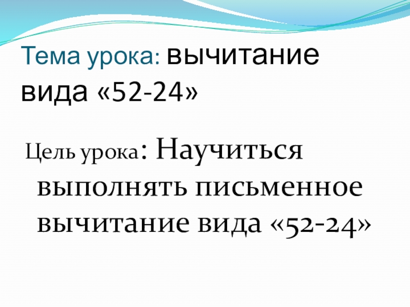 Тема урока: вычитание вида «52-24»Цель урока: Научиться выполнять письменное вычитание вида «52-24»