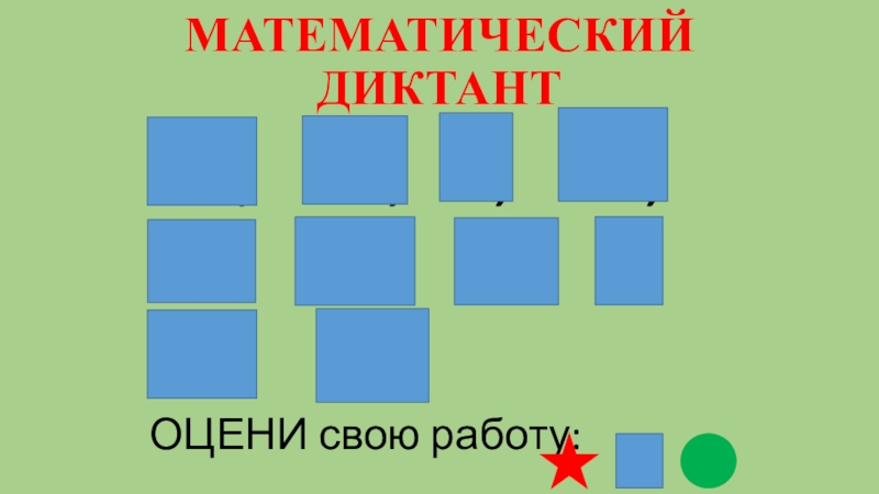 МАТЕМАТИЧЕСКИЙ ДИКТАНТ10, 14, 3, 15, 18, 13, 13, 9, 12,  12. ОЦЕНИ свою работу: