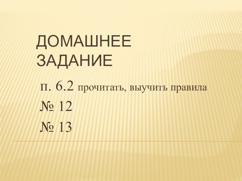 Домашнее заданиеп. 6.2 прочитать, выучить правила№ 12№ 13