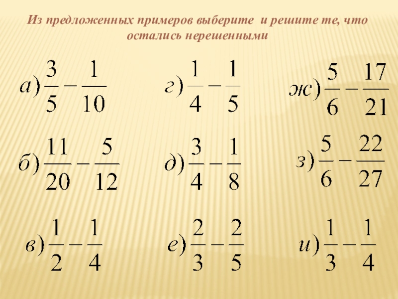 Слайд 8Из предложенных примеров выберите и решите те, что остались нерешенными