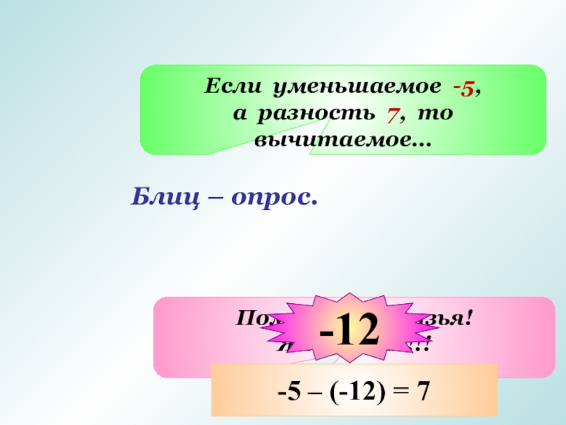 -5 – (-12) = 7