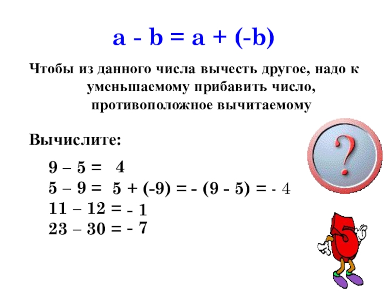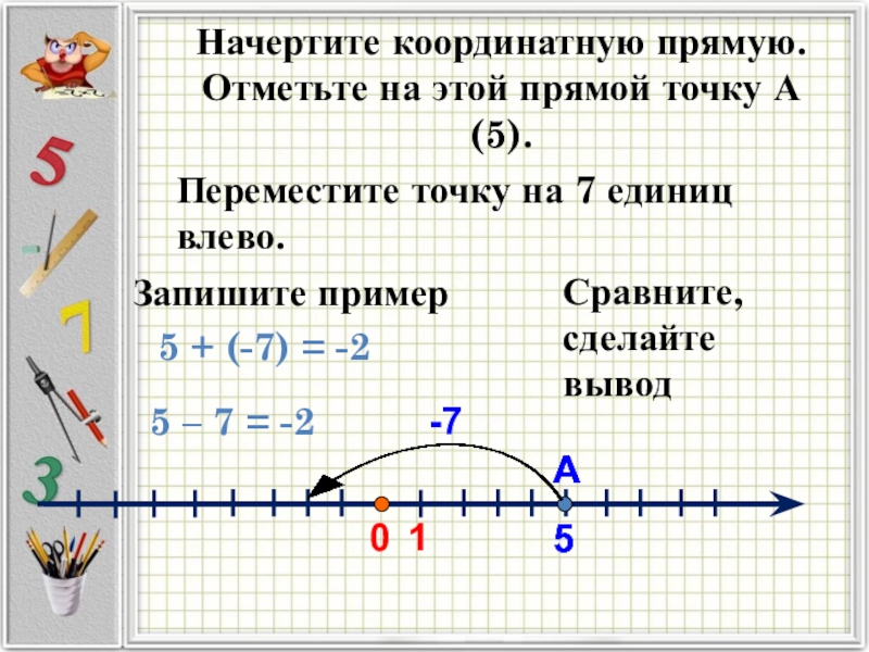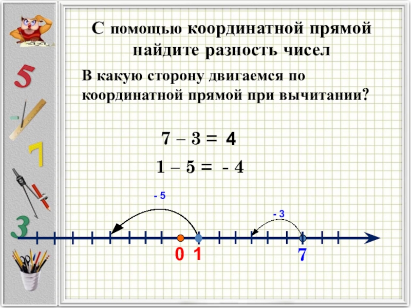 В какую сторону двигаемся по координатной прямой при вычитании?