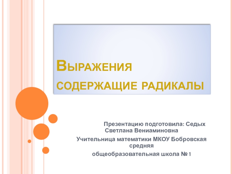 Презентацию подготовила: Седых Светлана Вениаминовна