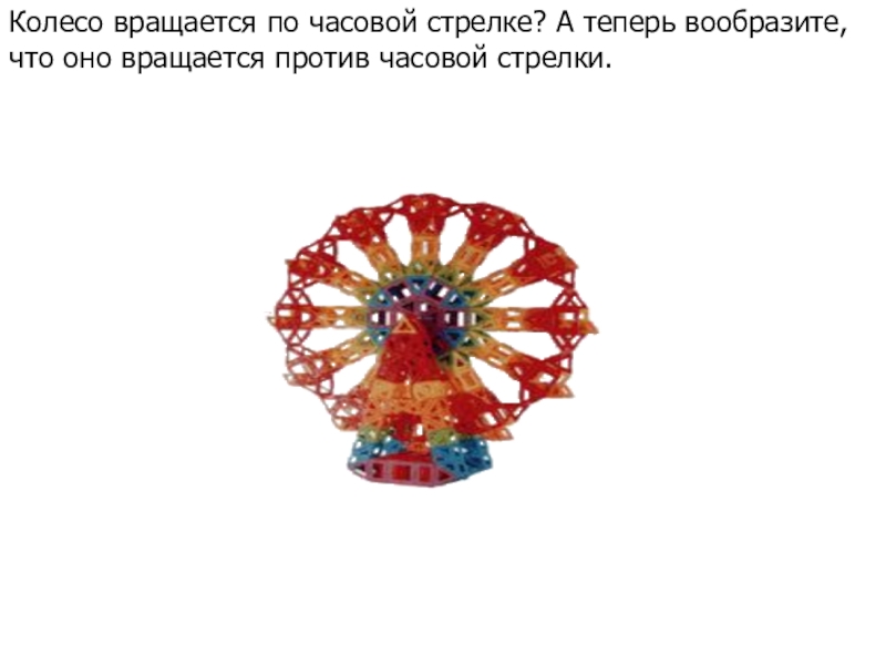 Слайд 19Колесо вращается по часовой стрелке? А теперь вообразите,