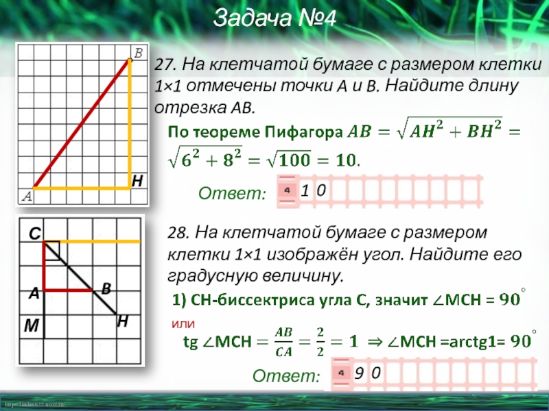 12. На клетчатой бумаге с размером клетки 1×1 изображён треугольник ABC. Найдите длину его высоты, опущенной на сторону AB.