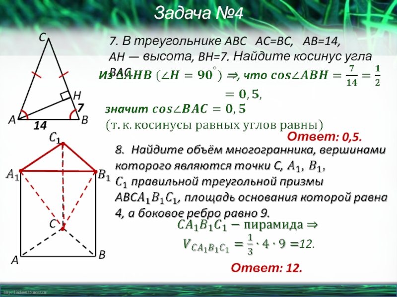 Высота, опущенная на сторону AB – это отрезок CH и CH=5.