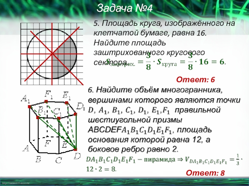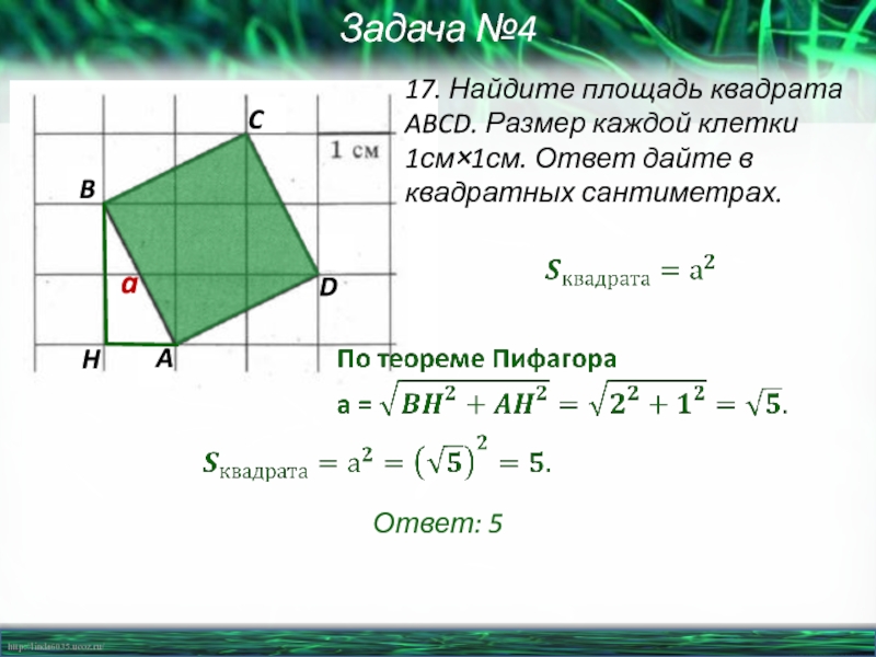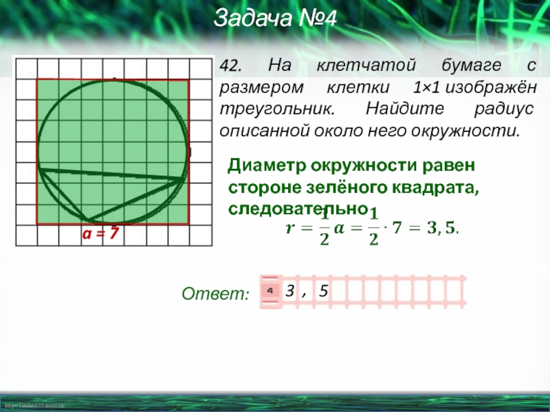 Диаметр окружности равен стороне зелёного квадрата, следовательно