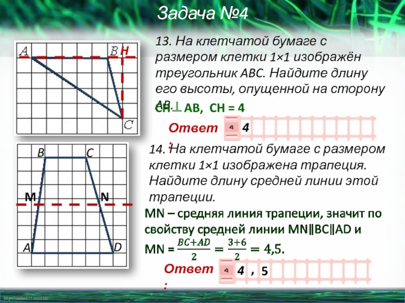 14. На клетчатой бумаге с размером клетки 1×1 изображена трапеция. Найдите длину средней линии этой трапеции.