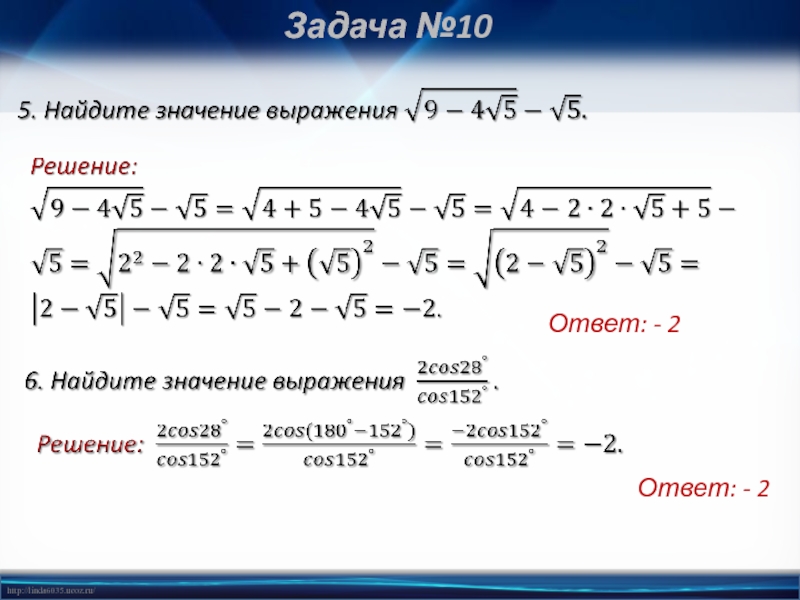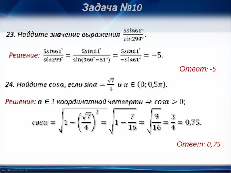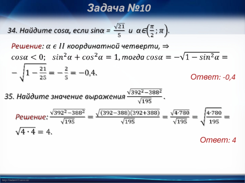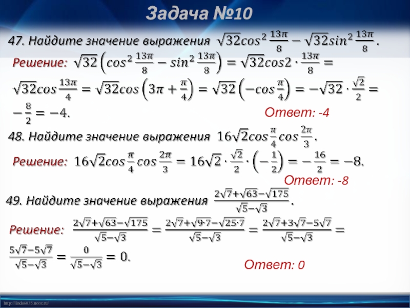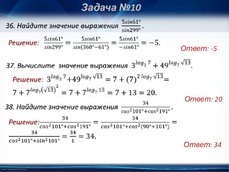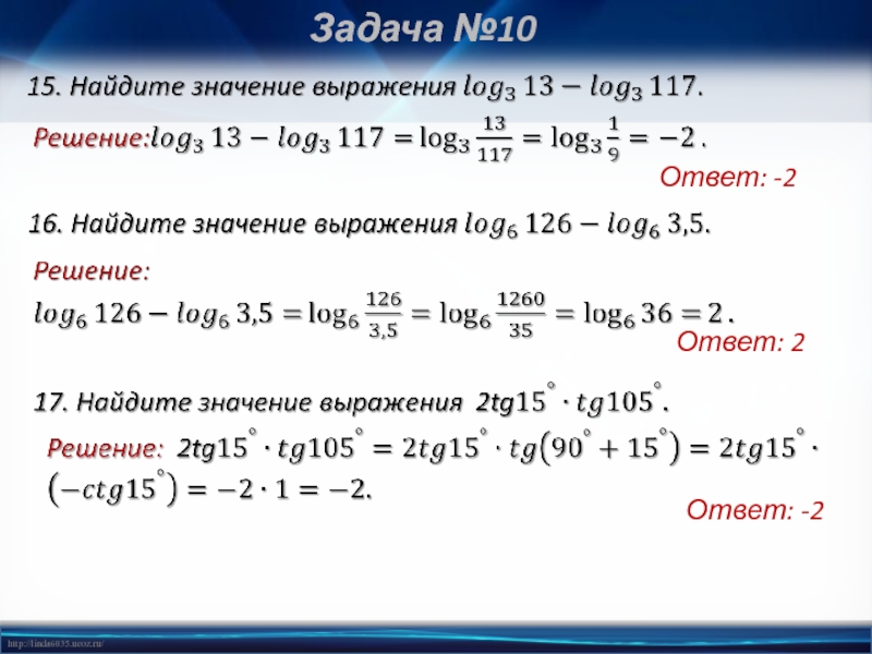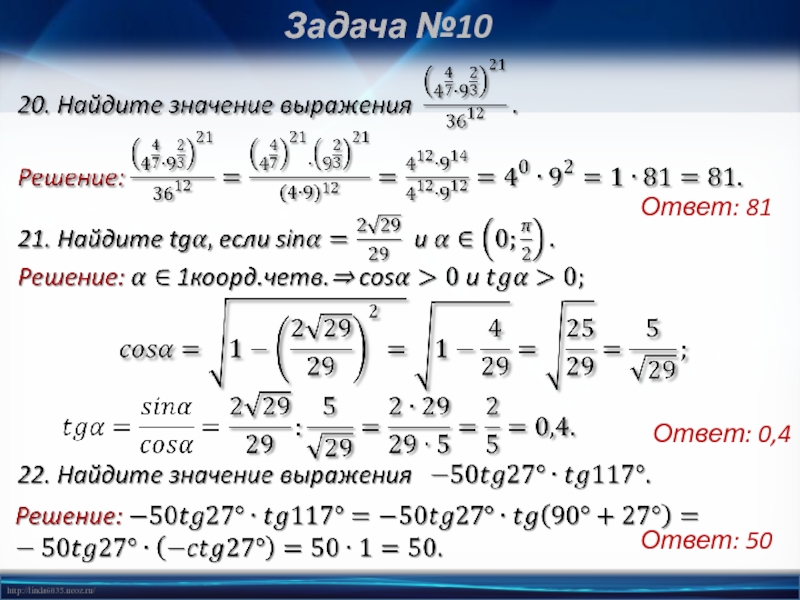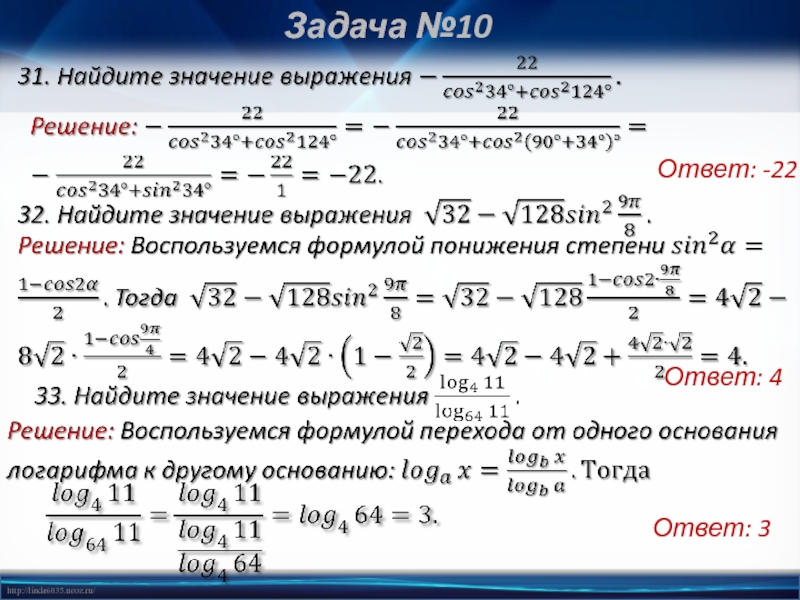Комментарий: Для решения задачи достаточно уметь выполнять действия с числами, знать определение и простейшие свойства степеней, корней, логарифмов, синуса, косинуса, тангенса.