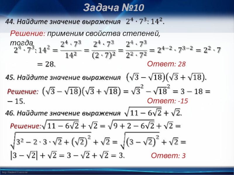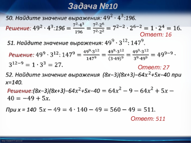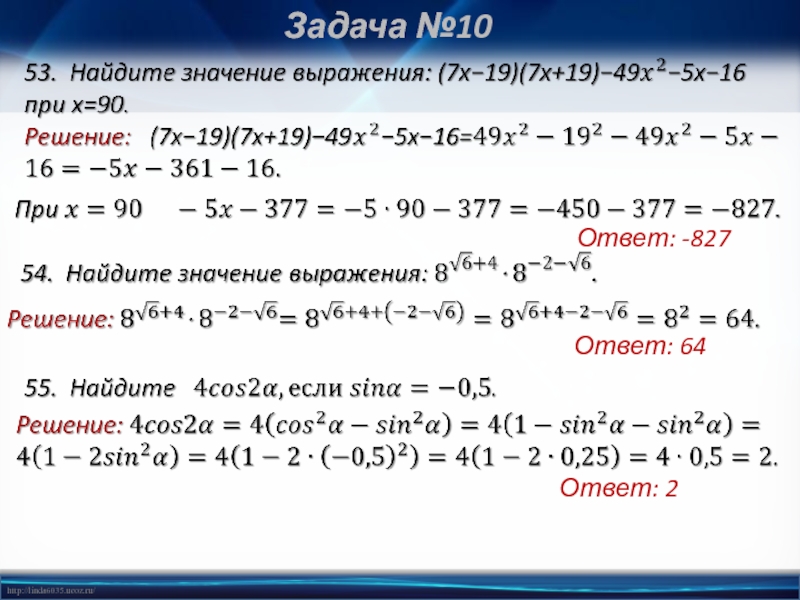 Характеристика задания: Задача на вычисление значения числового или буквенного выражения.
