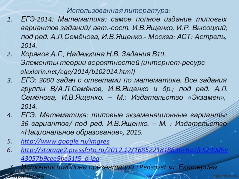 Решение: Общее число случаев (число участников, исключая самого Руслана Орлова) n = 26 – 1 = 25.