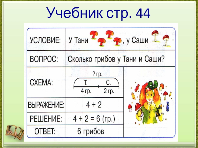 Презентация, доклад по математике на тему Задача и её составные части (Л.Г. Петерсон, 1 класс)
