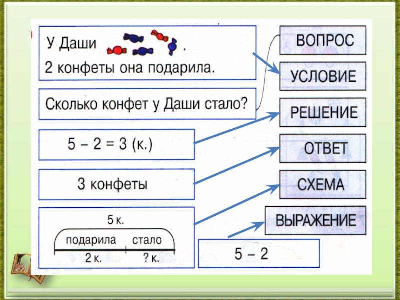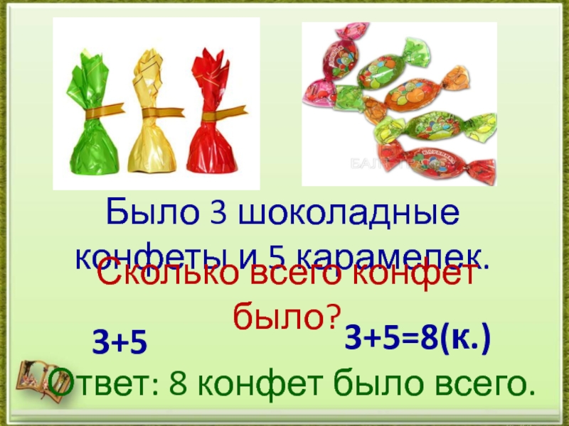 Слайд 6Было 3 шоколадные конфеты и 5 карамелек.