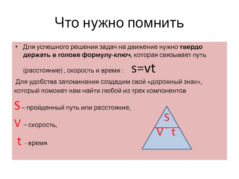 1. формула-ключ s=vt