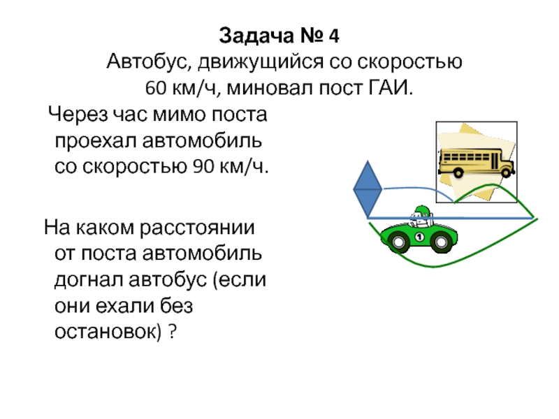 На каком расстоянии от поста автомобиль догнал автобус (если они ехали без остановок) ?