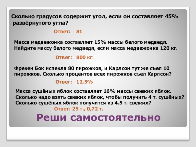 Масса сушёных яблок составляет 16% массы свежих яблок.