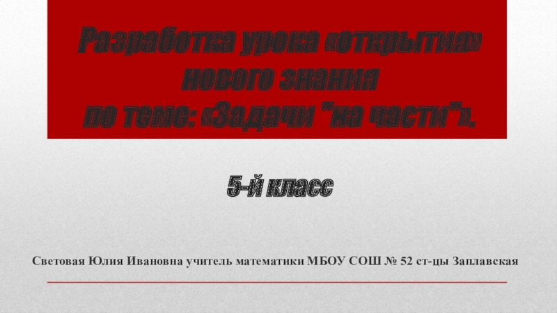 Световая Юлия Ивановна учитель математики МБОУ СОШ № 52 ст-цы Заплавская