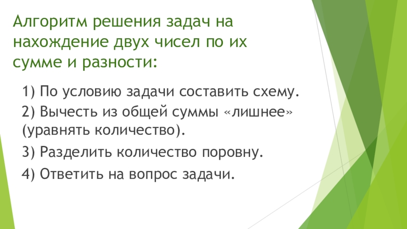 2) Вычесть из общей суммы «лишнее» (уравнять количество).