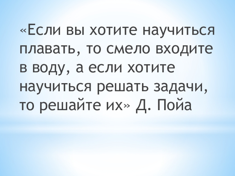 «Если вы хотите научиться плавать, то смело входите в воду, а если хотите научиться решать задачи, то решайте их» Д. Пойа