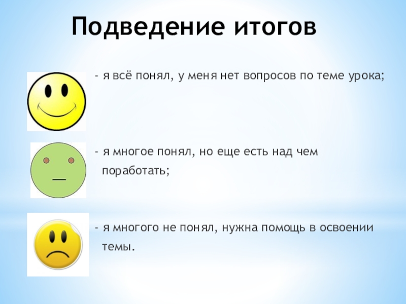 - я всё понял, у меня нет вопросов по теме урока;