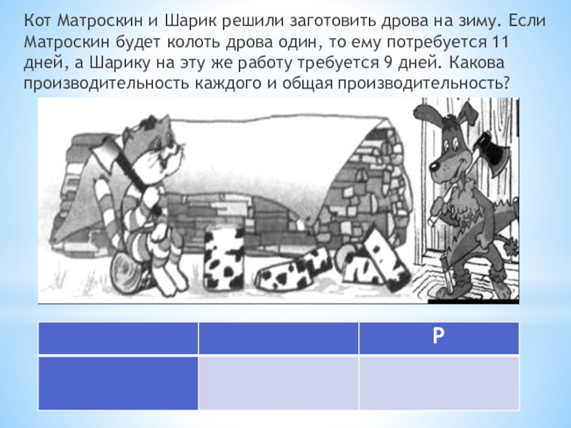 Слайд 6Кот Матроскин и Шарик решили заготовить дрова на зиму. Если Матроскин