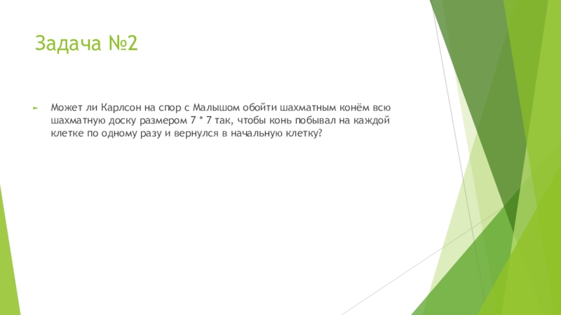 Задача №2Может ли Карлсон на спор с Малышом обойти шахматным конём всю шахматную доску размером 7 *