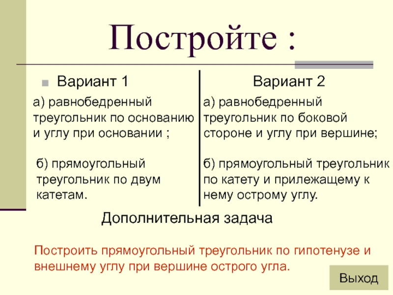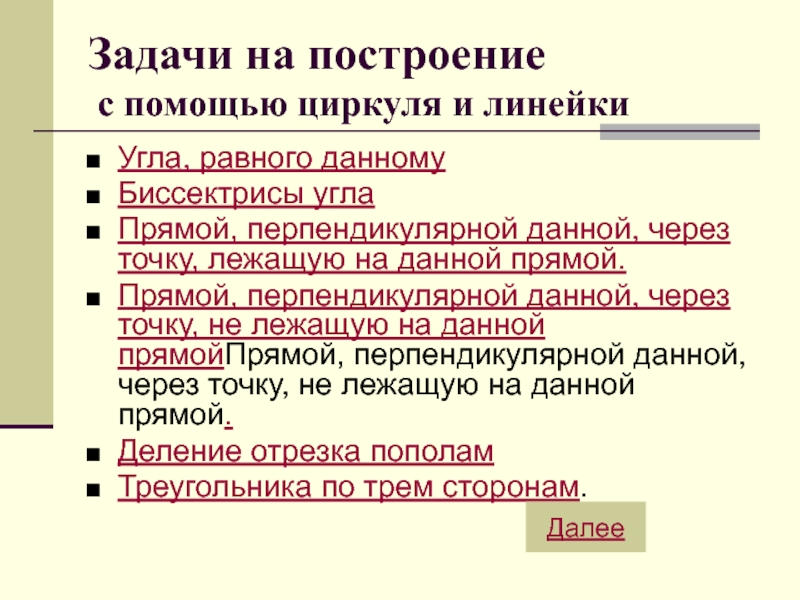 Работа может быть использована на обобщающем уроке геометрии в 7 классе по теме «Задачи на построение», а также на уроках геометрии в 8 и 9 классах при решении задач на построение.