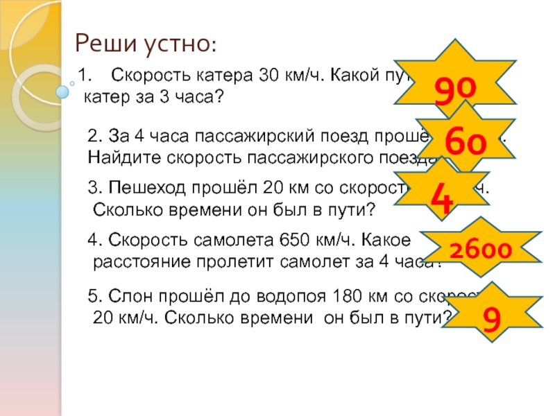 2. За 4 часа пассажирский поезд прошёл 240 км.