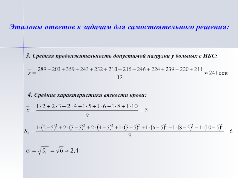 3. Исследуя продолжительность (в сек) физической нагрузки до развития приступа стенокардии у 12 человек с ишемической болезнью сердца, получили следующие данные: 289, 203, 359, 243, 232, 210, 215, 246, 224, 239, 220, 211. Найдите среднюю продолжительность допустимой нагрузки для больных с ИБС.