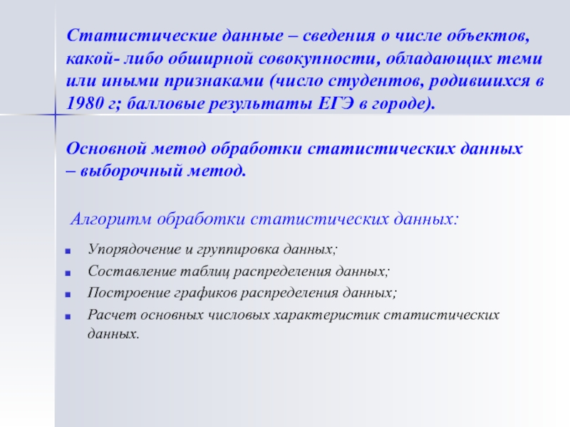 Выборка – совокупность случайно отобранных объектов генеральной совокупности.