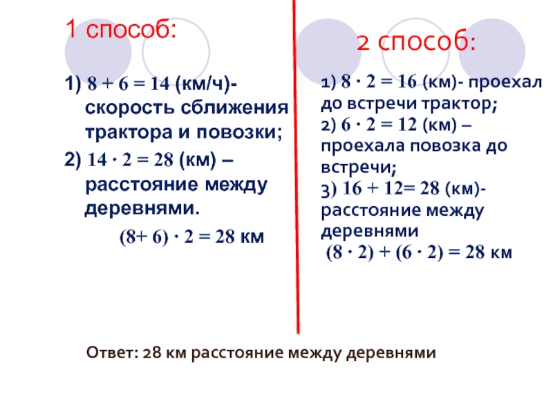 2) 6 ∙ 2 = 12 (км) – проехала повозка до встречи;