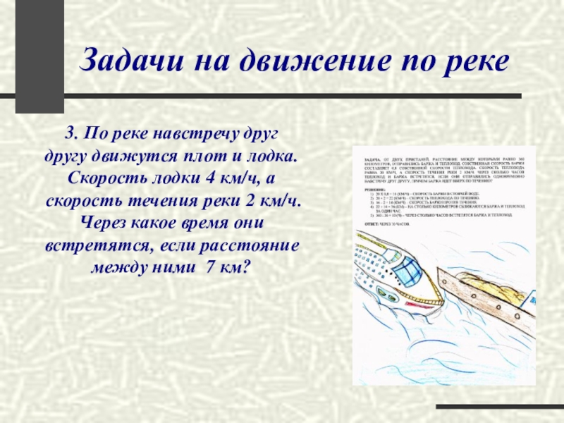 Задачи на движение по реке 3. По реке навстречу друг другу движутся плот и лодка. Скорость