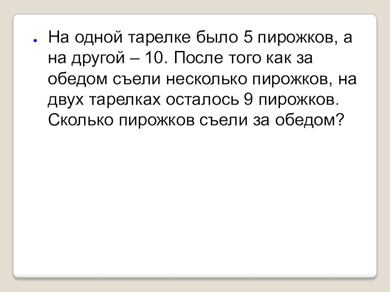 Слайд 6На одной тарелке было 5 пирожков, а на другой – 10.
