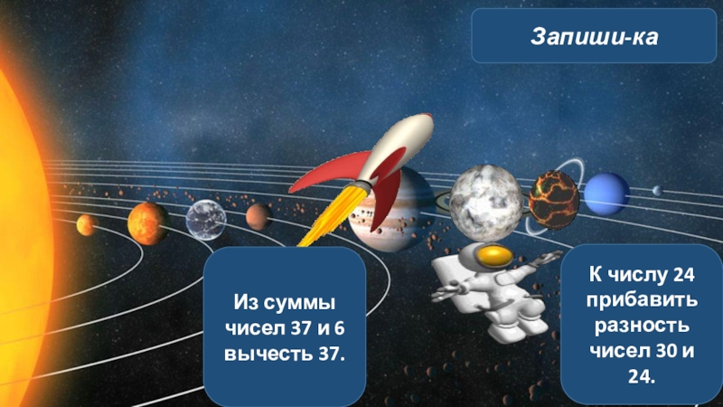 Запиши-каК числу 24 прибавить разность чисел 30 и 24.Из суммы чисел 37 и 6 вычесть 37.