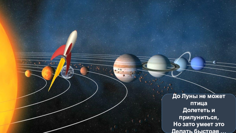 Слайд 2До Луны не может птица Долететь и прилуниться, Но зато умеет это Делать быстрая
