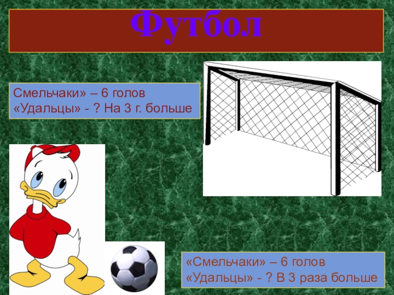 Футбол Смельчаки» – 6 голов«Удальцы» - ? На 3 г. больше«Смельчаки» – 6 голов«Удальцы» - ?