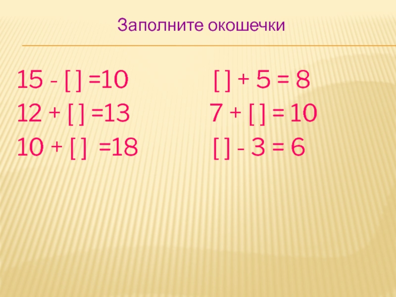 Заполните окошечки15 - [ ] =10        [ ] + 5