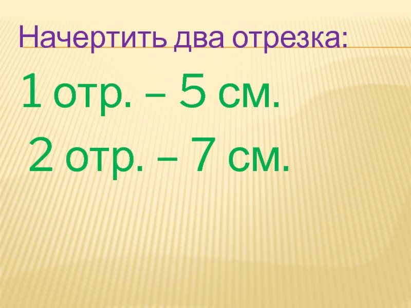 Начертить два отрезка: 1 отр. – 5 см. 2 отр. – 7 см.