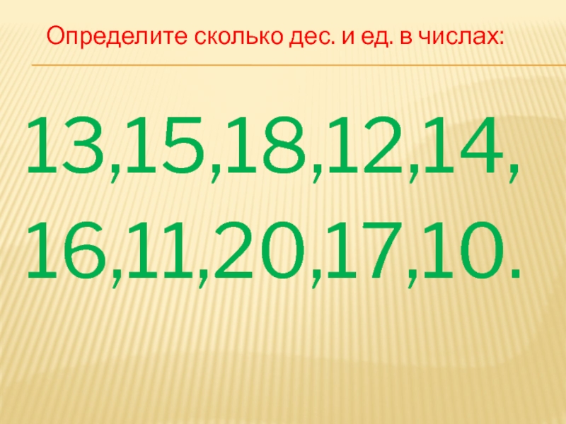 Слайд 3 Определите сколько дес. и ед. в числах: