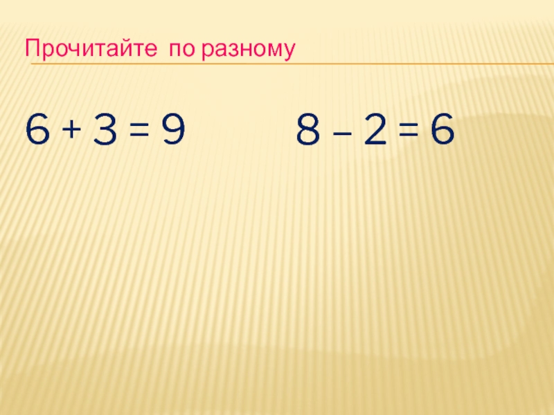 Прочитайте по разному6 + 3 = 9      8 – 2 = 6