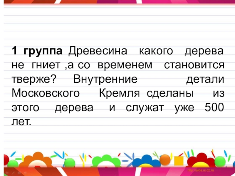 1 группа Древесина какого дерева не гниет ,а со временем  становится  тверже? Внутренние