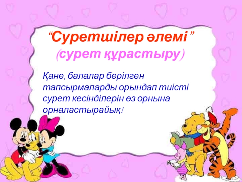 Қане, балалар берілген тапсырмаларды орындап тиісті сурет кесінділерін өз орнына орналастырайық!