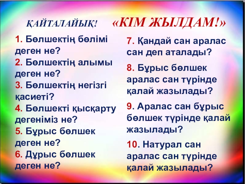 9. Аралас сан бұрыс бөлшек түрінде қалай жазылады?
