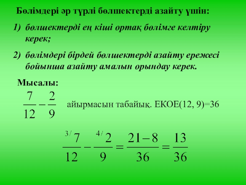 айырмасын табайық. ЕКОЕ(12, 9)=36