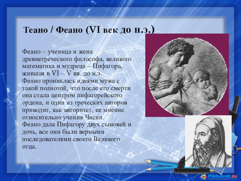 Слайд 5 Теано / Феано (VI век до н.э.)